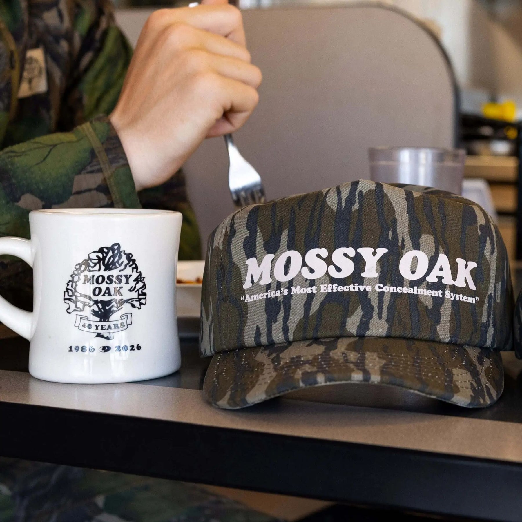 When you look through old hunting camp scrapbooks and pictures on the wall, a couple of hats always stand out. The old tree hats and the tagline cap, "the hat that just says 'Mossy Oak' on it."
